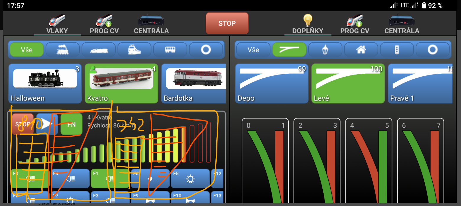 Tohle je jeden z důvodů, proč ještě není zobrazení pro návěstidla v Android aplikaci. Je to dost komplikované - je spousta různých dekodérů a každý s jiným adresováním.Dancer píše: ↑29.8.2023 17:01:01 Jinak co se týká návěstidel, tak já mam na kolejišti dekodéry od peli, ktere jsou přímo pod návěstidlem a zabírá po sobě jdoucí adresy. Dále dekodéry, kde 3-znaké návěstidlo zabírá 1,5 adresy (např. 1 rovně, 1 odbočkou a 2 rovně). Tak by se u 3. znaku musela adresa rozdělit na půl a přiřadit.