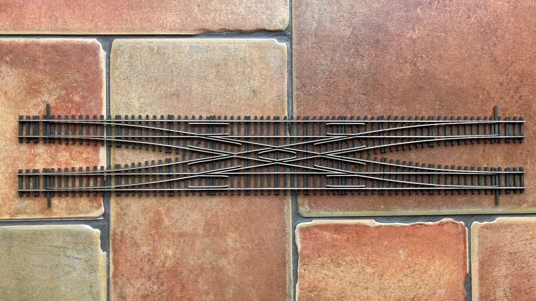 Jak je uvedeno shora, na "hradeckém" zhlaví stanice je křížení. Hledal jsem za pomoci "strýčka" Googleho, jak správně nařezat kolejnice - toto snad řeší přiložený obrázek. Ale ani stavitel "mechanického" provedení mně nedokáže poradit, jak připojit vlastní "střed" křížení na mikrospínače (nemám ani problém s vložením více kusů relé) tak, aby vlaková cesta fungovala s DCC bez jakýchkoliv závad = možné zkraty, popř. ztráta napájení HDV.